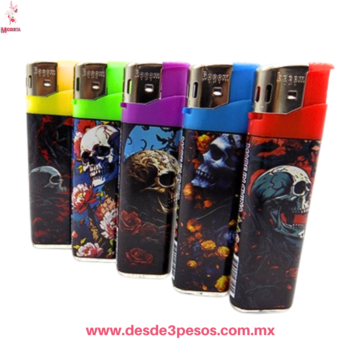 Caja con 50 Encendedores de bolsillo Personalizados Boom con Boton Pulsador 8 x 3 cm. DIS-3000
