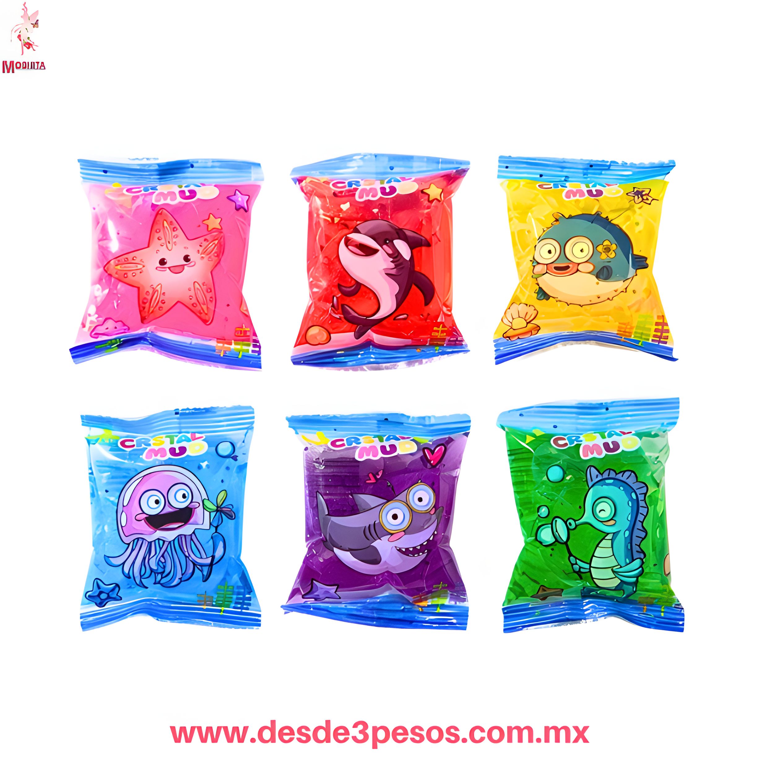 Caja con 72 Pzas de Mini Sobre de Slime Acuático con glitter 8 x 6 cm H-1848