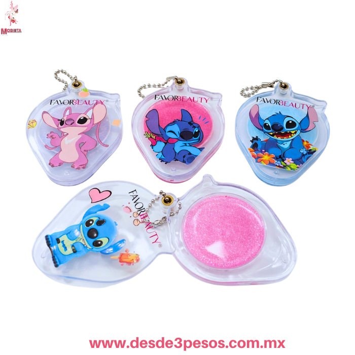 Gloss y llavero Stitch con Aroma Frutal con Glitter FAVOR BEAUTY 8 x 6 cm.