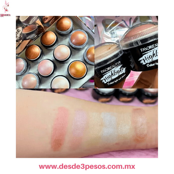 Iluminador en Barra 4 Tonos Diferente FAVOR BEAUTY 3.5 X 3 cm. Caja con 12 pza. precio por 1 pza.