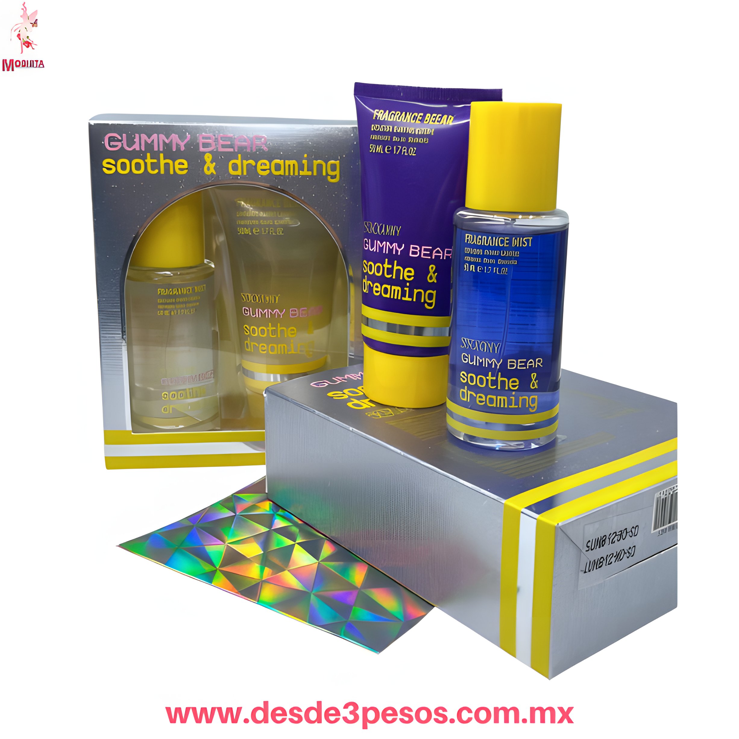 Juego de Perfume y Crema GUMMY BEAR aroma frutal uva 80 ml. Y 75ml. Lila
