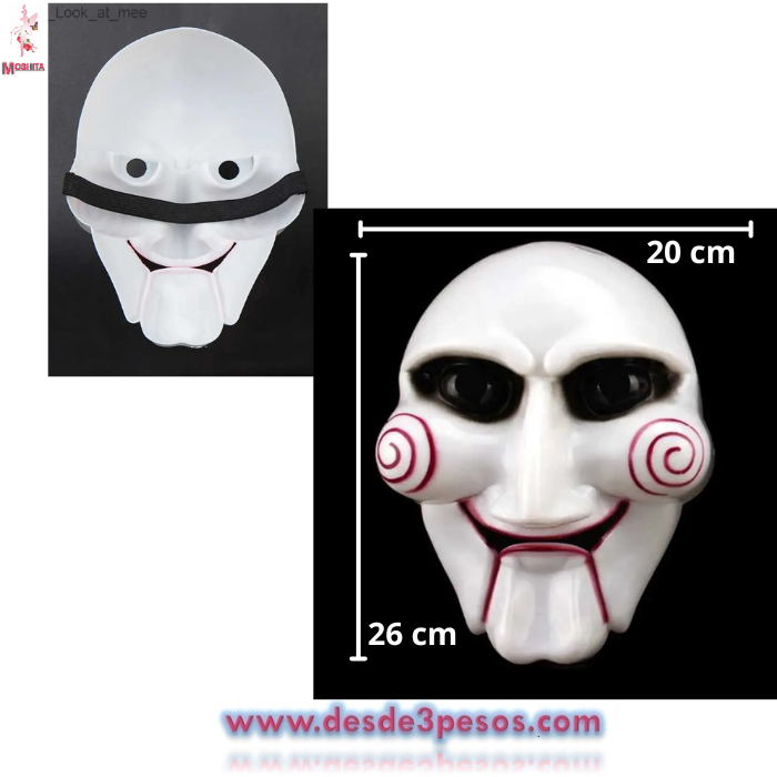 Mascara De Halloween Saw 26 x 20cm. Plastico duro resistente