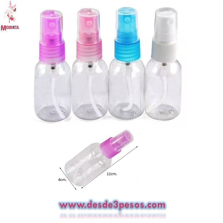 Paquete C/12 Atomizador plastico 40 ml.Transparente varios colores 11 x 4cm.