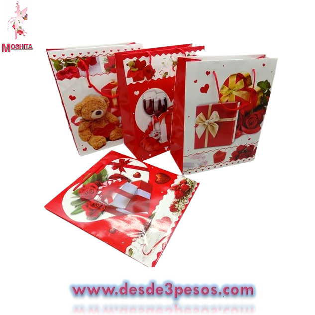 Paquete de 12 Bolsa de Regalo CHICA papel delgado decorado de San Valentin 18 x 21cm.