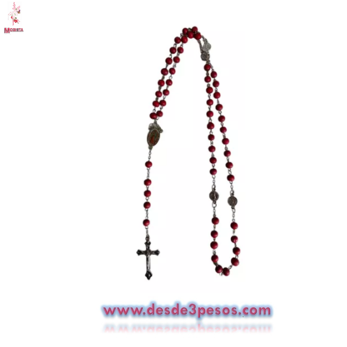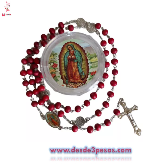 Rosario de Madera en cajita con estampado religioso