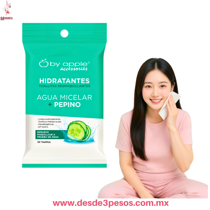 Toallitas desmaquillantes Agua Miselar PEPINO Remueve Maquillaje a Prueba de Agua 30 toallitas negras